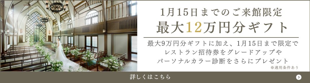 最大12万円相当のギフトをプレゼント1軒目のご見学のおふたりへ